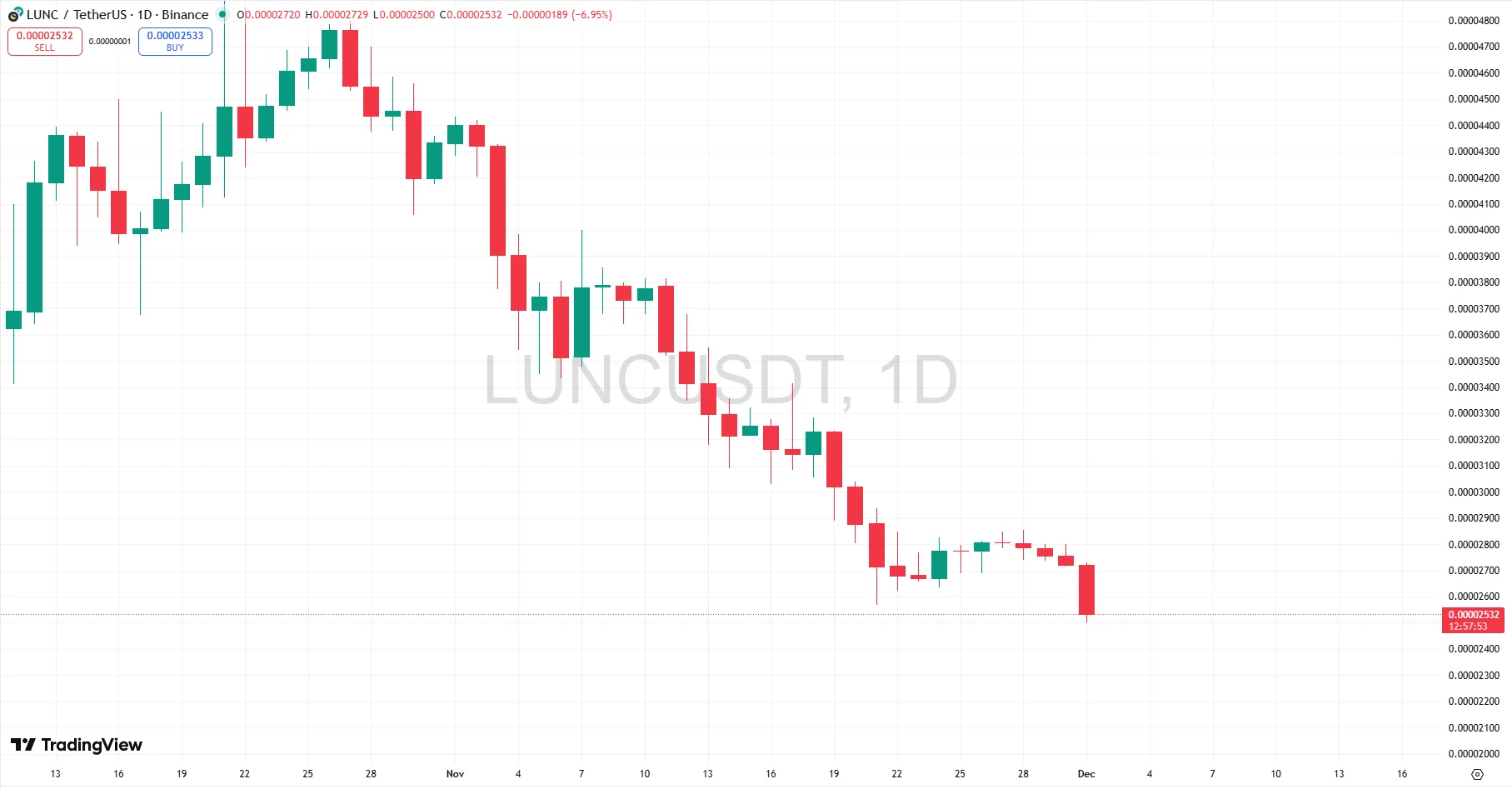 The Luna Classic community is now watching to see whether the market stabilizes or continues to react to Bitcoin movements as December begins with heightened uncertainty.