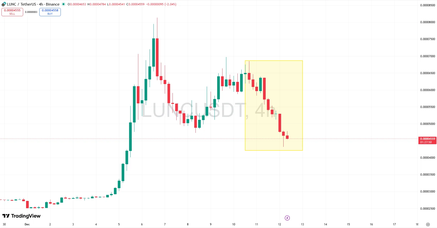 LUNC Price Falls 36.5 Percent in 48 Hours as Market Volatility Increases