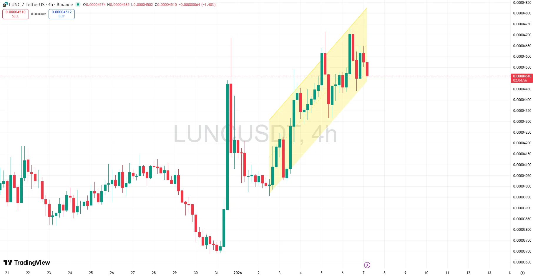 LUNC Shows Short Term Bullish Trend as Price Moves Within Ascending Channel