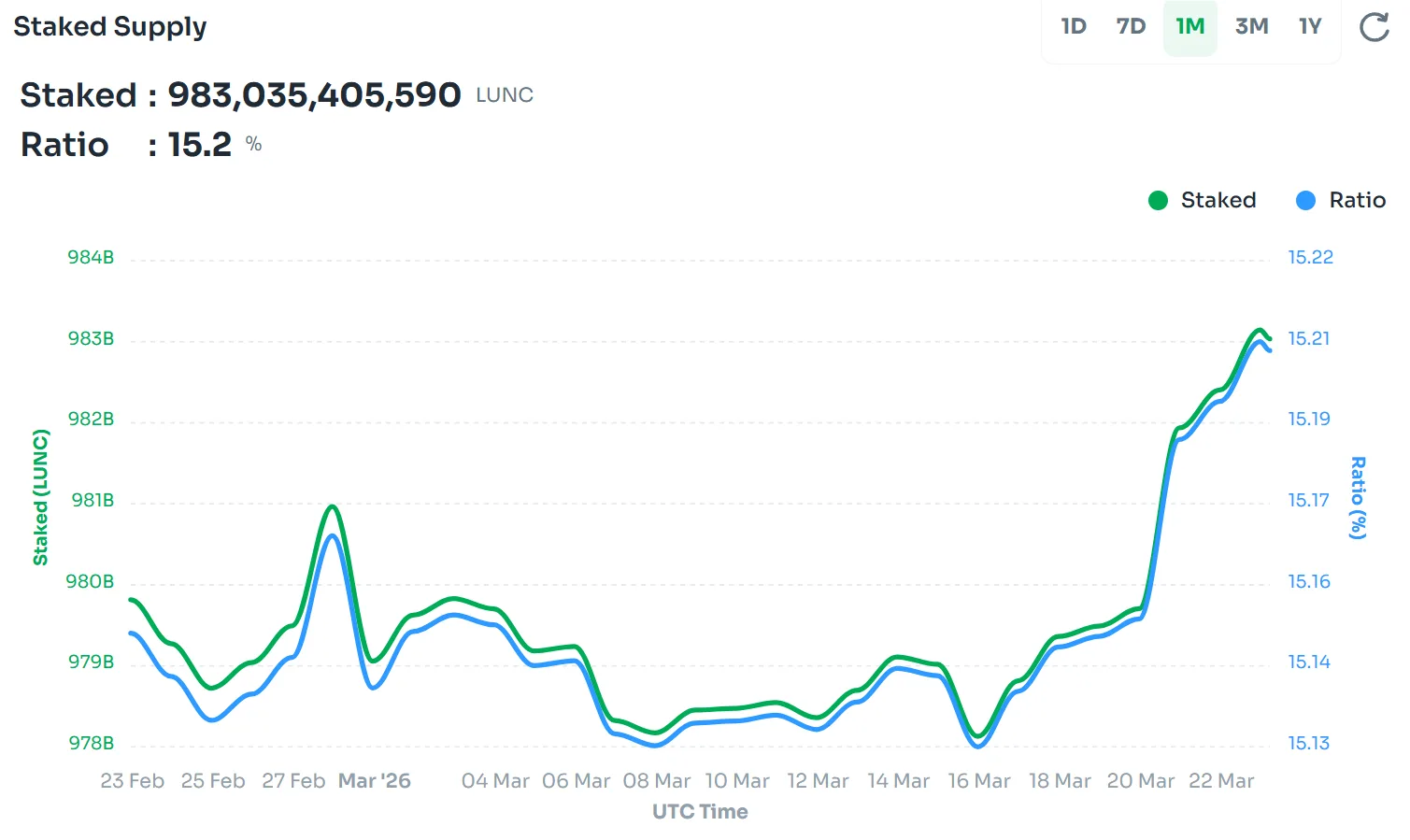 The data suggests that the Terra Classic community remains resilient. Even as the market experiences downward pressure, holders are choosing to commit their assets rather than exit positions.
